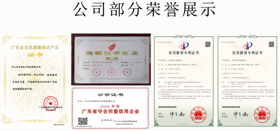 2020年,公司产品磁屏蔽效果优良电感被广东省高新技术企业协会评选为广东省名优高新技术产品,并获得广东省名优高新技术产品证书。
